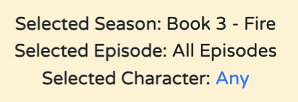 The filtering shows at the top of the screen, and can be reset using the button at the bottom of the screen. We are able to filter by season/episode and character.