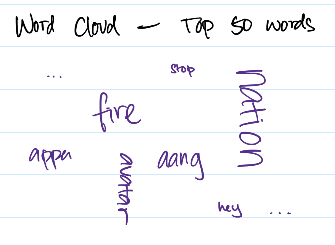 Additionally, we noticed that Sokka, although not the main character of the series (Aang), speaks 433 more words than Aang. We assume this is because Sokka tends to elaborate on jokes and plans in often verbose ways, whereas Aang tends to be more direct.